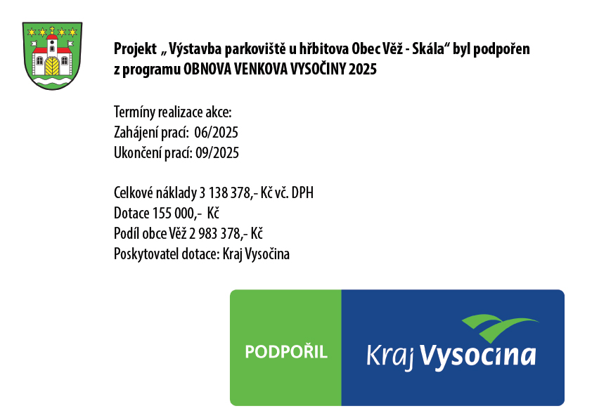 Datum zahájení 06/2025 Datum ukončení 09/2025 Celkové náklady projektu 3 138 378,- Kč Dotace: 155 000,- Kč